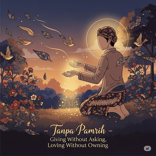 Tanpa Pamrih: Laku Kang Nggedhekake Roso Tanpa Njupuk BalineMerti Laku Tanpa Tebus: Rasa Kang Nguncalake EgoIng urip, kita asring tumindak nganggo itung-itungan batin:– “Yen aku nulungi, apa bali?”– “Yen aku sabar, bakal dianggep lemah?”– “Apa untunge yen aku ngalah?”Nanging piwulang Jawa ngajari:“Tumindak becik tanpa pamrih iku tumbu kang njupuk banyu sejatining urip.”Laku tanpa pamrih iku laku luhur — laku kang dilakoni dudu kanggo dipuji, dudu kanggo oleh ganjaran, nanging mung amarga rasa kang wus nyawiji karo kabecikan.1. Pamrih Iku Awit Saka Ego, Dudu Saka RasaPamrih teka saka:Pengarep-arep baliPangarep-arep pengakuanRasa kurang lan geloWong kang tumindak nganggo pamrih sejatiné durung bebas.Pamrih iku jerat alus kang ndadekake tumindak katon becik nanging tetep mung perdagangan rasa.“Saben pamrih nyuda suci.”2. Tanpa Pamrih Iku Laku Kang Tanpa BebanLaku tanpa pamrih ora butuh tepuk tangan.Laku tanpa pamrih:Ngreksa rasa tetap resikNggedhekake kawelasan tanpa syaratNjalari tumindak dadi luwih legawaManungsa kang bisa tumindak tanpa pamrih, sejatiné wis ora butuh bukti kanggo nampa rasa tresna — sebab rasa tresna wis ana ing lakune.“Tanpa pamrih iku ora kelangan, nanging kebak.”3. Laku Tanpa Pamrih Iku Nandur Ing Ati, Ora Ing NjabaOra kabeh tumindak apik butuh pamiarsa.Tumindak tanpa pamrih iku kaya:Nandur wit ing lemah keringNglairaké swasana adem tanpa nyebut jenengNyumangga swarga tumrap liyan, sanajan ora dilebokake dhéwéPiwulang luhur Jawa ngandharake manawa kabecikan sejati mung murni nalika ora dadi dagangan rasa.“Nuwuhake kabecikan dudu kanggo ditulis, nanging kanggo dihisap déning alam.”4. Tanpa Pamrih Iku Ciri Rasa Kang Wus PenuhRasa kang wus penuh, ora butuh nambah, ora butuh diakoni.Mula wong kang bisa tanpa pamrih, sejatiné wis tekan tingkat kawicaksanan rasa, kang:Ora melu rebutan pialaOra perlu sanjunganOra rebut tempat puncak“Wong kang bisa ngasihi tanpa pamrih, sejatiné wis ngasilake padhang marang jagad.”Tutup: Ngresiki Laku Saka Pamrih Iku Laku Kang Marai Urip Enteng Lan MaremUrip tanpa pamrih iku urip kang ora obah kanggo pamer.Urip tanpa pamrih iku urip kang obah amarga rasa wis nuntun tanpa arah luar.Urip tanpa pamrih iku sejatine: laku sing murni, kaya banyu mili saka sumber, tanpa milih ngendi bae sing bakal diuripi.“Sapa tumindak becik tanpa pamrih, sejatiné dadi saluran cahya saka kang Maha Sumber.”“Sapa kang ngasihi tanpa timbal balik, sejatiné wus nyawiji karo rasa kang dudu ego.”