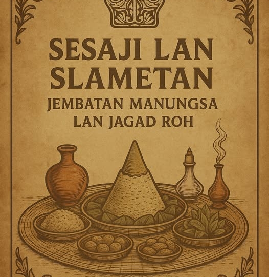 Sesaji lan Slametan: Jembatan Manungsa lan Jagad RohAna pitutur lawas Jawa: “Urip iku mung mampir ngombe.” Tegesé, manungsa mung titah kang mampir sedhela ing jagad iki, sadurunge bali marang asal mula dumadi. Nanging ing mampire iku, manungsa kudu eling, kudu nyambung rasa marang Gusti, marang leluhur, marang alam, lan uga marang roh-roh sing ora katon nanging ana. Ing kéné, sesaji lan slametan dadi jembatan kang alus nanging kuat, kang nyawijèkaké jagad kasat mata lan jagad ora kasat mata.Makna Sesaji – Simbol, Dudu Sekadar PangananSesaji dudu mung sega tumpeng, jajan pasar, kembang telon, utawa banyu bening. Saben unsur iku ngemot simbol lan doa kang alus.Kembang telon minangka pratanda kasucèn, wewangian sing nyawiji karo ambegan para dewa lan roh leluhur.Banyu bening minangka lambang kesucèn ati, yen ati resik, kabeh sambungan bakal gamblang.Dupa minangka swara ambegan manungsa, kang ngrembuyung munggah nyedhak marang swarga.Tumpeng lan jajan pasar minangka lambang kasugihan bumi, bukti yen bumi tansah maringi pangan lan urip.Sesaji iku sejatine basa simbolik, wujud komunikasi antarané manungsa lan jagad halus. Ora nganggo aksara, nanging nganggo rasa lan lambang.Slametan – Rasa Guyub lan Panyuwunan RahayuSlametan yaiku laku kang nglantarake rasa rahayu, slamet, lan tentrem. Wong Jawa yakin, slametan iku ikat sosial lan spiritual. Wong padha mangan ing tampah siji, nganggo dhaharan kang padha, minangka pratanda yen kabeh padha: ora ana kang luwih dhuwur, ora ana kang luwih asor.Ing tataran batin, slametan iku lelampahan panyuwunan marang Gusti lan jagad roh supaya kabeh rahayu:Slametan kelairan: panyuwunan supaya bayi slamet, dilindhungi saka gangguan kasar lan alus.Slametan panggonan anyar: ngelingake yen papan iku uga ana sing nguwasani, mula kudu nyuwun idin lan rahmat.Slametan kematian: minangka pangruwatan lan panglipur, kanggo ngantar sukma bali menyang panggonan sejati.Slametan sejatine jembatan antarane sangkan paraning dumadi, supaya manungsa ora lali marang asal lan ora kagok marang pungkasan.Kesinambungan karo AlamIng kawruh Jawa, alam iku guru sejati. Sesaji lan slametan ora mung kanggo roh, nanging kanggo nyawiji karo unsur jagad. Wong Jawa percaya yen:Banyu iku nyambung karo ati.Geni iku nyambung karo semangat lan nafsu.Lungguh (lemah) iku nyambung karo sabar lan keteguhan.Angin iku nyambung karo ambegan lan urip.Nalika sesaji digelar lan slametan ditindakake, sejatiné manungsa lagi nyetel harmoni karo papat unsur agung iki. Yen harmoni, urip bakal rahayu; yen ora, urip bakal kebak sengkala.Dimensi Spiritual lan FilosofiSaka sisi batin, sesaji lan slametan mulangaké:Ikhlas: amarga panganan sing paling enak kudu diwenehake luwih dhisik kanggo roh lan tamu.Rendah hati: eling yen urip ora bisa ditindakake dhewe, butuh alam, butuh pepadha, butuh Gusti.Kesinambungan: manungsa mung titah sing numpak wektu. Slametan ngelingake yen kabeh urip ana gandhèngan antar generasi, antar jagad kasar lan jagad alus.Sesaji lan slametan dudu perkara gaib thok, nanging piwulang batin kanggo ngresiki rasa, supaya manungsa luwih alus ati, luwih tepa slira, lan luwih ngerti paseduluran sejati.Panutup – Basa Rasa Kang Ora Pati KatonIng pungkasane, sesaji lan slametan iku basa rasa, basa kang luwih jero tinimbang tembung. Basa kang mung bisa dirungu déning sing ati resik lan eling. Wong Jawa pitutur:“Urip kang tanpa slametan, kaya lampu tanpa lenga.”Mula, slametan lan sesaji iku dudu perkara lawas sing kudune ditinggal, nanging jembatan spiritual supaya manungsa tetep nyambung karo Gusti, karo leluhur, karo alam, lan karo rasa sejati kang ana ing jero ati.