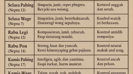 Rahasia Weton Tulang Wangi: Ilmu Jawa & Ajiannya WETON “TULANG WANGI”… Lihat selengkapnya PROMPT : WETON “TULANG WANGI”… Lihat...