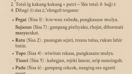 Rahasia Ajian Jawa: Petunjuk Jodoh Pancadaya Bab 1 — Petungan Jodho Pancadaya P… Lihat selengkapnya PROMPT : Bab 1 — Petungan Jodho Pancadaya...